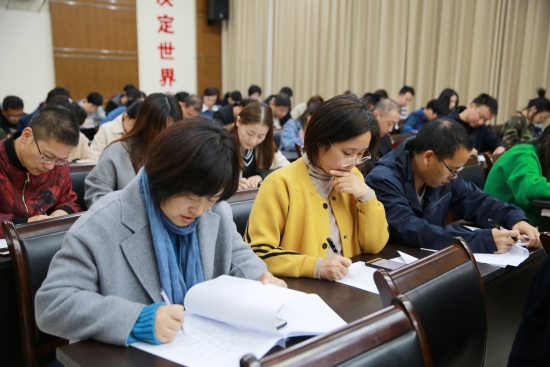 圖為測(cè)試現(xiàn)場(chǎng) 此次測(cè)試采取閉卷形式,分黨員和非黨員試題兩卷,測(cè)試范圍包括“不忘初心、牢記使命”主題教育、十九大報(bào)告及習(xí)近平新時(shí)代中國(guó)特色社會(huì)主義思想等知識(shí)。大樓近100名員工參加測(cè)試。 此次測(cè)試既是對(duì)學(xué)習(xí)效果的檢驗(yàn)考核,又是對(duì)學(xué)習(xí)成果的鞏固提升,將進(jìn)一步激發(fā)全體員工學(xué)習(xí)的主動(dòng)性和積極性,使政治信念更加堅(jiān)定、理論知識(shí)更加充沛、工作熱情更加高漲、行動(dòng)更加積極務(wù)實(shí),真正起到了以考促學(xué)、以考促記、以考促行的目的。大家紛紛表示要以此次知識(shí)測(cè)試為東風(fēng),鼓足干勁、學(xué)以致用,勇于擔(dān)當(dāng)、忠誠(chéng)履職,在平凡的崗位上干出優(yōu)異成績(jī),努力開(kāi)創(chuàng)各項(xiàng)工作新局面。 馮曉潔