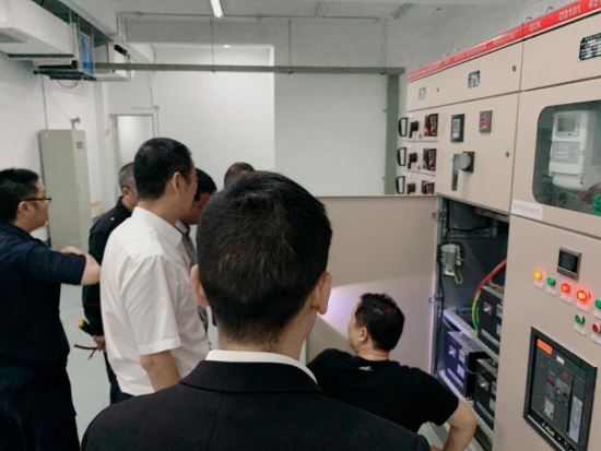 圖為多方合力查找問題現(xiàn)場 5月23日,電力公司上門檢修,告知配電房及電路問題一切正常。面對空調正常、電路正常的報告,展廳內又嘗試開啟空調,但10分鐘左右高壓又跳閘。即將進入炎熱的夏季,房產銷售展廳內不能缺少空調。 房產公司求援于工程部機電設備維養(yǎng)中心,5月28日,葉俊等四名專業(yè)電力人員,以及大溪嶺隧道所金衛(wèi)軍赴銷售廳對電力問題進行現(xiàn)場勘察,經仔細梳理、剖析,得出結論后反饋給電力部門,電力部門采納建議后第二次派人前來整改,歷史遺留電力問題終于徹底排除。 鄭攀