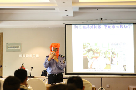圖為教員現(xiàn)場示范防煙面具的使用方法 此次培訓特邀了臺州安居防火技術有限公司的教員開展消防安全知識講座。培訓中,教員通過播放真實的火災視頻,結合近期全國及本市發(fā)生的多起火災事故案例,深入淺出地講解了火災發(fā)生的原因和危害、安全逃生方式、常用消防工具的使用方法以及防火注意事項等內容。隨后,教員就如何正確地使用滅火器、防煙面具等消防用具進行了現(xiàn)場操作示范,并耐心解答了大家在日常生活工作中遇到的消防安全疑問。 培訓結束后,參訓人員紛紛表示消防知識培訓是堂必修課,不僅進一步認識到火災不留情、火災可防范的道理,還加深了對消防安全知識的了解掌握。今后,市政公司將常態(tài)化開展此類活動,切實提高全員消防安全自防自救能力,做到居安思危,思則有備,有備無患。 張琛