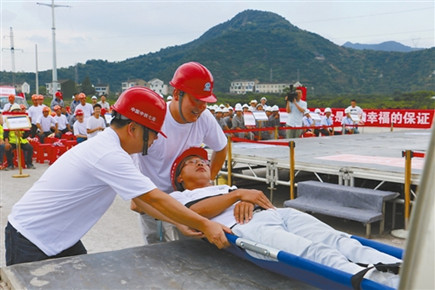 7月5日,在市內(nèi)環(huán)路(黃巖段)7+120-10+170工程施工現(xiàn)場,救援人員將“高處墜落”工人抬向救護(hù)車輛。當(dāng)日,內(nèi)環(huán)路(黃巖段)舉行了應(yīng)急救援演練活動,演練以分組競賽的形式舉行。施工單位、監(jiān)理單位及臺州高速市政建設(shè)投資有限公司員工等近200人參加了演練。 http://paper.taizhou.com.cn/tzrb/html/2017-07/07/content_818958.htmfrom=singlemessage&isappinstalled=0