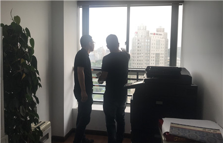 圖為檢查門窗 臺風(fēng)來臨期間,市政公司要求員工手機保持暢通,盡量在公司或者家里不要外出,確保人身和財產(chǎn)的安全,避免不必要的傷害和損失。 徐夢燁
